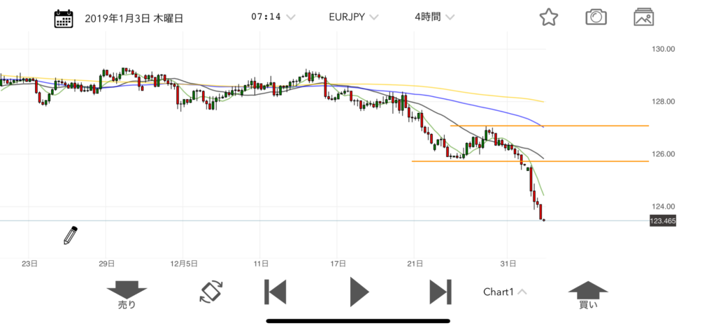 負け 途中損切りトリプルトップのネックライン抜け15分足確定したので。