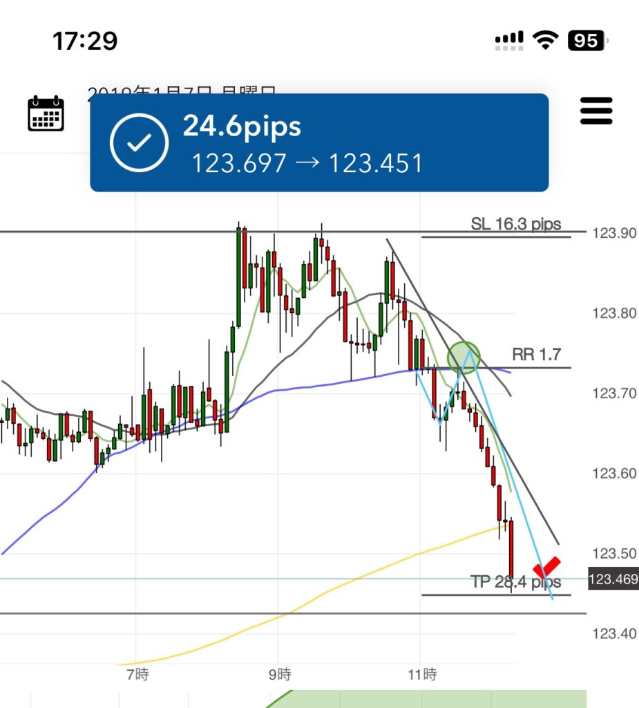 シナリオ: 三角持ち合い上抜けででエントリー。RR2くらい